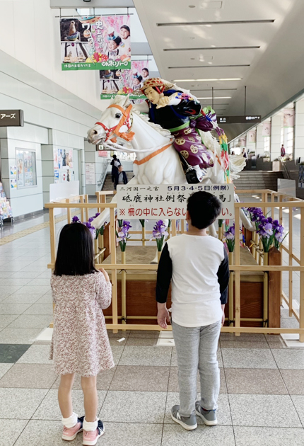 豊川市の砥鹿神社例大祭の呼び物「流鏑馬(やぶさめ)」をかたどった立体像が15日、豊橋市の豊橋駅改札前広場に設置された。 砥鹿神社の流鏑馬は小中学生の男子が馬にまたがり、両手を広げて境内の特設馬場を走り抜ける神事。立体像は繊維強化プラスチッ...