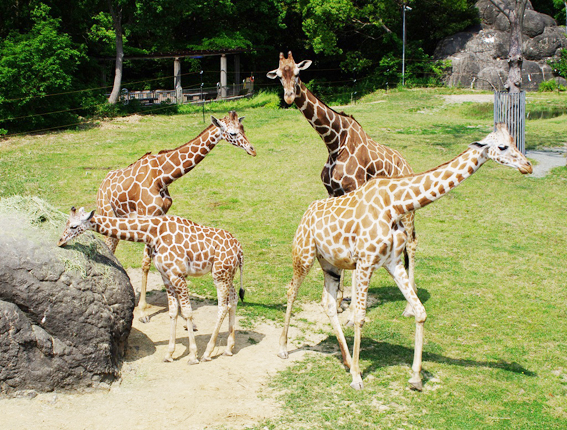 アキコ(左奥)は他の3頭と仲良し=豊橋市提供
