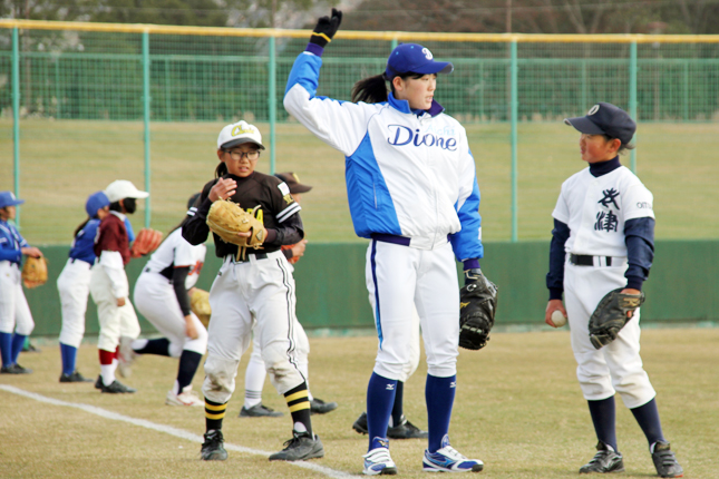 寺部歩美選手は昨年の野球教室で子どもたちに技術を指導した