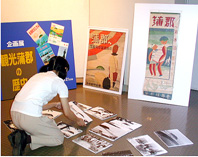 杉本画伯のポスターなどを展示する企画展の準備風景