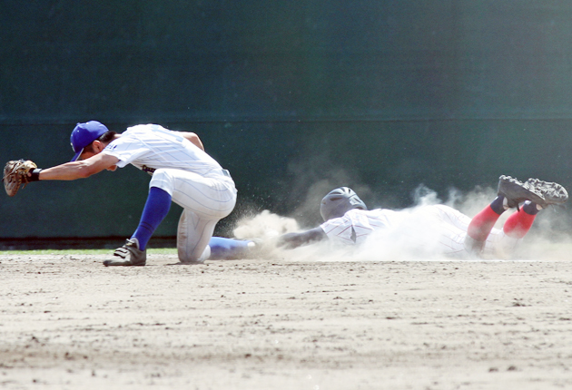 中神達哉が気迫のヘッドスライディングで飛び込んだが最後の打者となった(同)