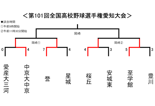 第101回全国高校野球選手権愛知大会は26日、小牧球場で雨天順延の準々決勝1試合が行われ、東三河勢で勝ち残る豊川は3―5で至学館に惜敗、2014年以来の甲子園出場は成らなかった。 前日、豊川は6回まで4―0とリードしたが大雨により中断し、...