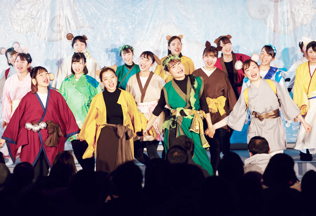 十二支をテーマに創作ミュージカルを披露する学生たち(豊橋創造大学体育文化ホールで)