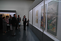 学芸員の解説で作品を楽しむ出席者たち(豊橋市美術博物館で)