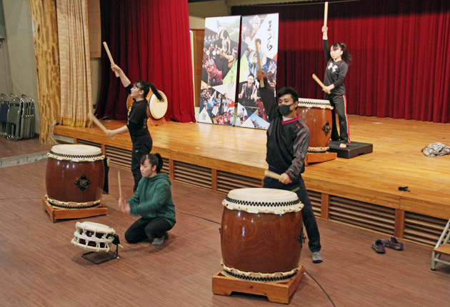 久しぶりに和太鼓演奏が披露された(東栄町花祭会館で)