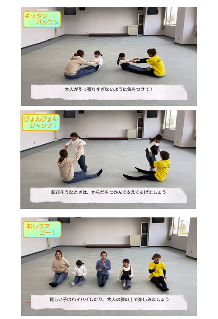 ギッタンバッコン㊤、ぴょんぴょんジャンプ㊥、おしりでゴー(おしり歩き)㊦