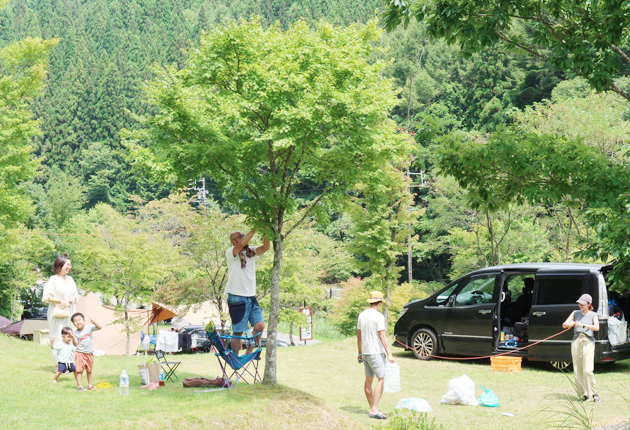 キャンプを楽しむ家族連れ(19日、設楽町で)