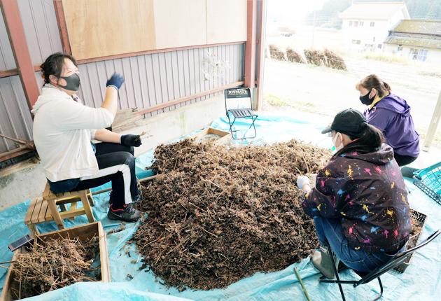 設楽町の母親3人/エゴマ栽培挑戦初収穫