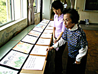 展示した絵本を見る北川さんら