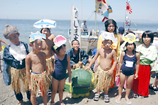田原市白谷区の龍宮まつりで浦島太郎や乙姫にふんした地元児童たち(白谷海水浴場で)