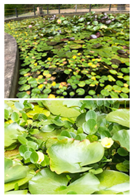 上からアサザは「かわいい」がぴったり、「対抗心」がふさわしいウォーターポピー(同)