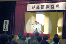 伊良湖岬で寄席を披露する林家木久蔵さん
