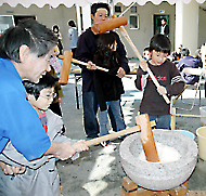 豊橋市中岩田の県営岩田住宅で24日、同住宅自治会(小池真宏会長)主催の餅(もち)つき大会が行われ、同住宅に住む豊橋市民と日系南米人が一緒に餅つきを楽しんだ。今年で4回目。 午前10時、「今から餅つき大会を行います。無料ですので皆さん参加し...