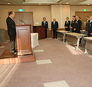 職員たちを前にあいさつする吉川理事長