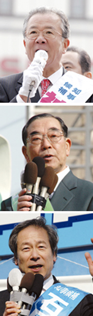 愛知県知事選挙が18日告示された。現職で3選をめざす神田真秋(555)=自民・公明推薦=▽新人の元愛労連議長、阿部精六(66)=共産推薦=▽新人の前犬山市長、石田芳弘(61)=民主・社民・国民新党推薦=の3氏が届け出、それぞれ名古屋市内に...