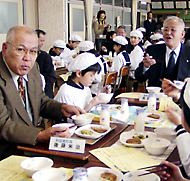 全国学校給食週間が始まった24日、蒲郡市三谷東小学校(大須賀仁校長)で第9回「市長と児童のふれあい給食会」を開いた。6年生56人と会食したのは、金原久雄市長や平岩尚文教育長ら行政、市議会、市教委関係者ら13人。 この日のメニューはニギスの...