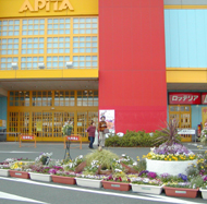すでに7日から会場の雰囲気を盛り上げるフラワーステージ(アピタ向山店で)