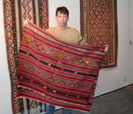 豊富な種類のキリムをそろえた会場(ギャラリー48で)
