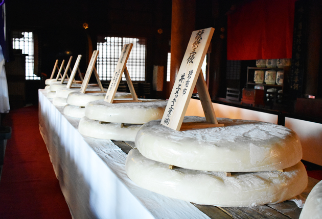 正月に備えて並べられた大鏡餅(豊川稲荷で)
