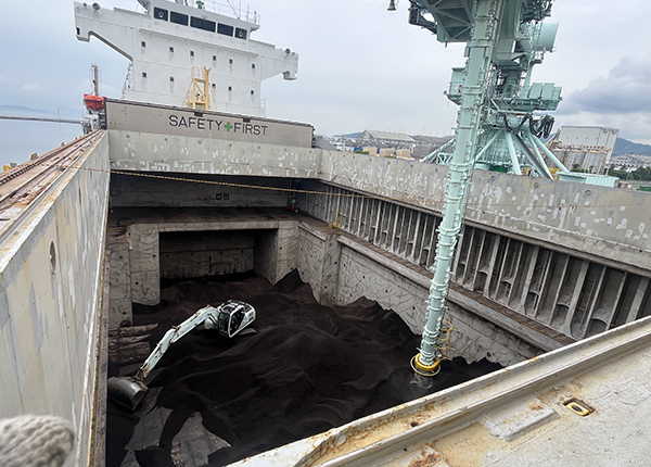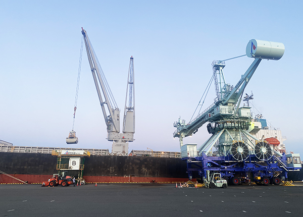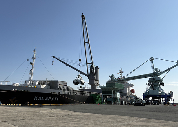 原料や燃料の輸送に使う大型バルク船の荷役作業、重量物の取扱等、他社が扱いにくいものを得意としています。